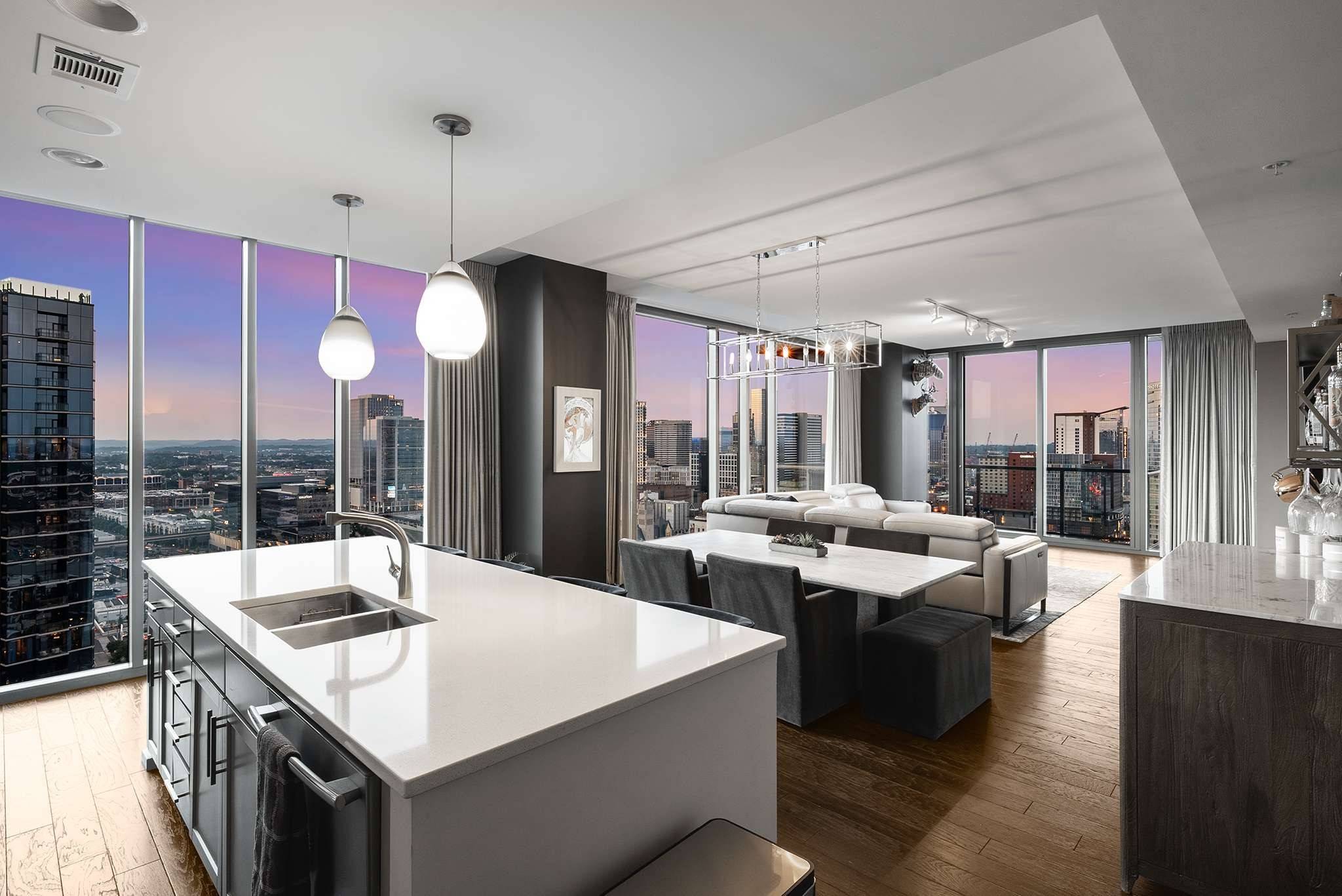 Welcome to Residence 2202 at Twelve Twelve, where sophisticated city living meets effortless comfort. Just below the penthouse, this stunning 2-bedroom, 2.5-bath corner home wraps you in sweeping, iconic views of downtown Nashville, the perfect backdrop for morning coffee or evening cocktails.The residence offers two expansive private balconies, each offering breathtaking panoramic views.