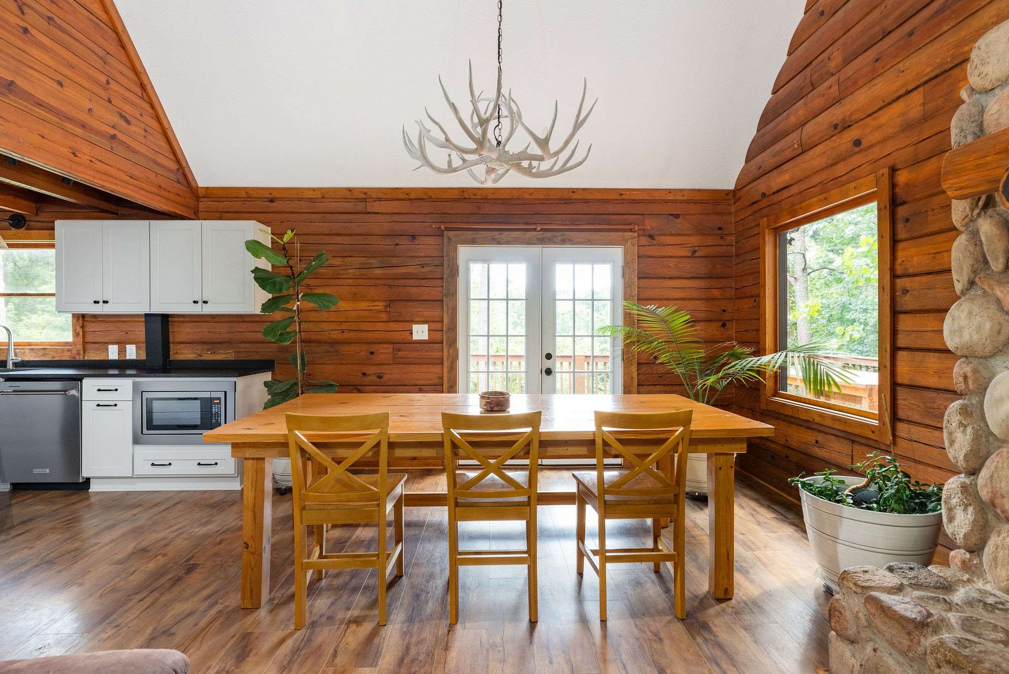 Welcome to your dream retreat in Ashland City—it features rustic warmth yet modern living all on 5 peaceful acres near the Cumberland River. With 5 total bedrooms, 3 bathrooms, 2 living rooms, and abundant closets throughout, this home offers storage for every need. This beautifully updated log cabin has been thoughtfully upgraded inside and out, featuring freshly stained wood for a sleek exterior, a brand-new deck, two new HVAC systems for year-round comfort, updated PEX plumbing, and so much more. Enter inside to discover a brand-new kitchen with an extra-large island, renovated bathrooms, all-new laminate flooring, fresh paint, updated tile, hardware, and new lighting throughout—every detail has been refreshed. The fully finished basement adds incredible versatility with two additional rooms, a spacious living area, and a full bath—perfect for guests, a home office, or hobbies. And it doesn't stop there—outside a huge shed, nearly the size of a second home, with 720 sq ft is perfect for a workshop, home gym, and even features a loft with plenty of extra room for all your essentials. Outside, enjoy the natural beauty of your wooded property with ultimate privacy and that “staycation all year long” feeling. Whether you're sipping coffee on the porch, exploring your land, or hosting friends, this cabin is the perfect blend of peaceful retreat & home! (48 Hour Kick Out Clause in place for current contract's home sale contingency! Seller is still showing!!)